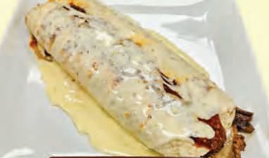 All served with rice, beans, lettuce, guacamole, tomatoes, sour cream. And covered with cheese dip